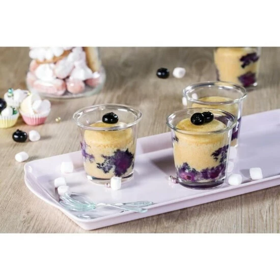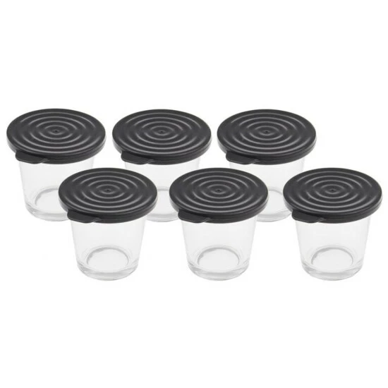 Set aus 6 Glasverrinen mit Silikondeckel, widerstandsfähig und praktisch. Mit ihnen können Sie ganz einfach Rezepte für Verrinen herstellen, die sowohl salzig als auch süß sind