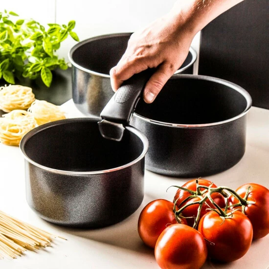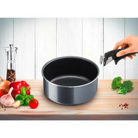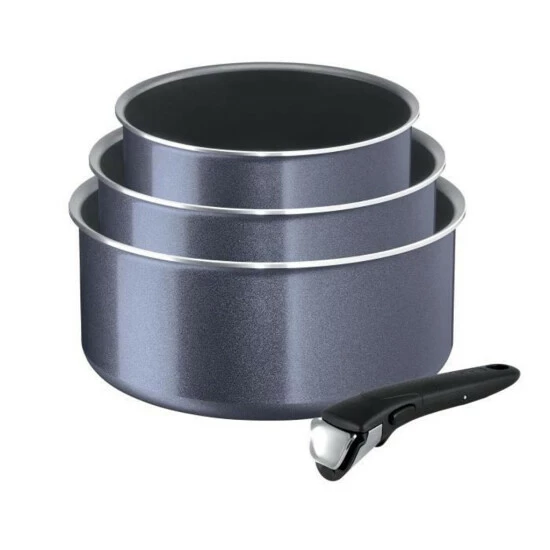 TEFAL Set mit 3 Töpfen Ingenio Elegance – Aluminium – Mit abnehmbarem Griff – Antihaftbeschichtung – Alle Wärmequellen außer Induktion – Durchmesser: 16/18 und 20 cm – Farbe: grauer Glitzer.