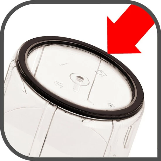 - SICHER: Der Deckel ist mit einer sicheren Verschlusstechnik ausgestattet, damit er sicher auf dem Behälter bleibt. Der Anti Rutsch Boden vermeidet, dass der Zerkleinerer auf der Arbeitsfläche rutscht.