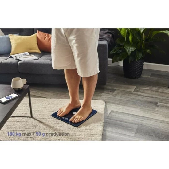 Am billigsten 🛒 TEFAL BM9661S1 Goodvibes Health Connected Waage, 14 Körperindikatoren, Tragfähigkeit 180 Kg, Teilung 50 G, Connected Application 🌟