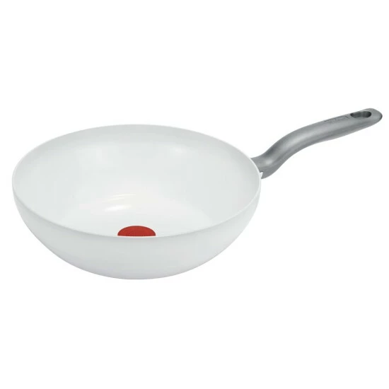 Die CeramicControl White Wokpfanne in Weiß ist ideal zum scharfen Anbraten, Schmoren oder knusprigen Braten von Gemüse oder Fleisch. Die Pfanne wurde aus extrahartem Leichtmetall gefertigt und mit Keramik versiegelt. Dadurch gelingen Speisen mit wenig Fett ideal. Danach lässt sich die Pfanne sehr leicht reinigen. Der Thermospot in der Mitte der Pfanne zeigt an, wenn die ideale Brattemperatur erreicht ist. und die eingearbeitete ferromagnetische Edelstahlplatte sorgt für beste Hitzeverteilung. Der Griff ist ergonomisch geformt und die Pfanne ist Backofengeeignet bis 175 °C. Die Wockpfanne mit Schüttrand ist zudem für alle Herdarten, auch Induktion, geeignet.
