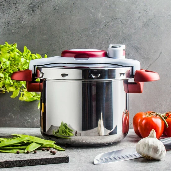 Der Tefal Schnellkochtopf funktioniert in der Küche aller Liebhaber von Gerichten, die lange kochen oder schmoren müssen. Von nun an können Sie Ihre Lieblingsgerichte bis zu zweimal schneller zubereiten als in einem klassischen Topf. Dies spart viel Zeit und Energie. Köstliche und essentielle Brühe und Eintöpfe können jeden Tag bei Ihnen zu Hause sein, nicht nur an Feiertagen.