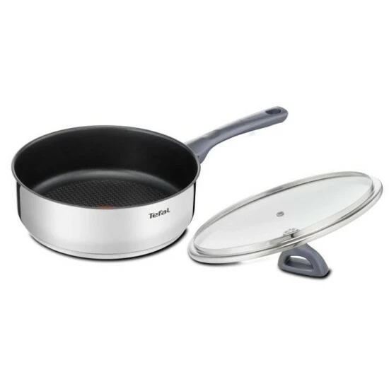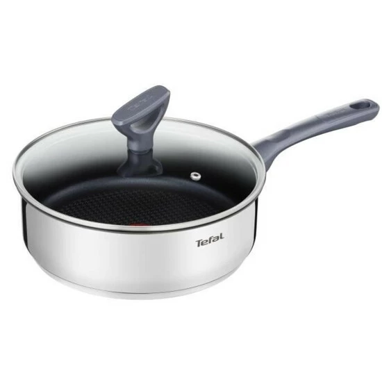 TEFAL Sauteuse – Durchmesser: Ø 24 cm – Material: Edelstahl – Mit Glasdeckel – Außenbeschichtung: Edelstahl – Innenbeschichtung: Antihaft – Alle Wärmequellen einschließlich Induktion