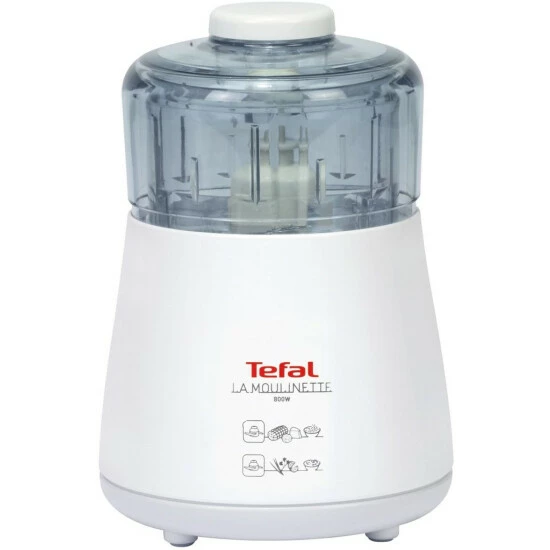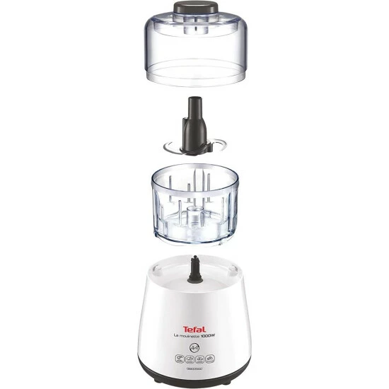 Der Tefal Zerkleinerer Moulinette ist mit einem großen Zerkleinerungsbehälter ausgestattet, der zum Beispiel 300 g Fleisch in nur sechs Sekunden zu Hackfleisch zerkleinern kann. Die Bedienung erfolgt ganz simpel nach dem „1-2-3“ Prinzip – es muss nur dreimal auf den Deckel gedrückt werden und schon sind die Lebensmittel zerkleinert. Der 360°-Deckel kann aus jeder Position auf das Gerät gesetzt werden, der transparente Behälter ermöglicht das Beobachten der Zubereitung.