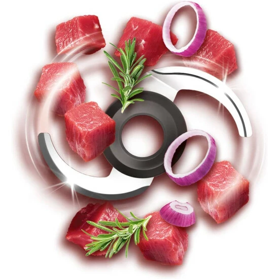 Dank 300 g Behälter auch für große Füllmengen, z.B. bis 300 g Fleisch in nur 6 Sekunden zu Hackfleisch zerkleinern. Auch perfekt geeignet für: Zwiebeln, Knoblauch, Kräutern, Nüssen, Käse etc.