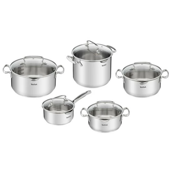 Ein Set von vier Tefal-Töpfen und einer Kasserolle ist für das tägliche Kochen nützlich. Solid gefertigte Töpfe sind sicherlich ein unverzichtbarer Bestandteil jeder gut ausgestatteten Küche. Produkte mit unterschiedlichen Kapazitäten helfen viele Gerichte für die ganze Familie und Freunde zubereiten. Dank ihnen können Sie Pasta, Kartoffeln, Gemüse, Suppe, Eintopf, leckere Eintöpfe und viele andere Mahlzeiten kochen.