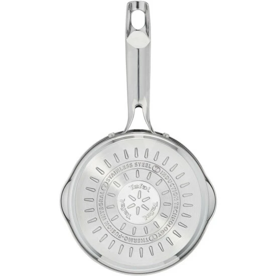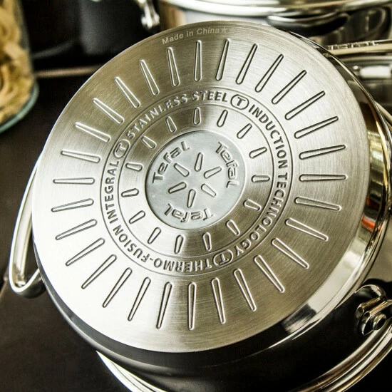 Jeder Tefal-Topf ist mit einem passenden Deckel aus hitzebeständigem Glas versehen. Durch das transparente Material können Sie den gesamten Kochvorgang steuern, ohne den Deckel unnötig anheben zu müssen. Die Topfdeckel haben Entlüfter, die überschüssigen Dampf entfernen. Zusätzlich hat der Deckelrand ein Sieb zum Ablassen von Flüssigkeiten aus dem Topf. Ausgießen von Wasser aus Salzkartoffeln oder Nudeln wird viel einfacher und sicherer.