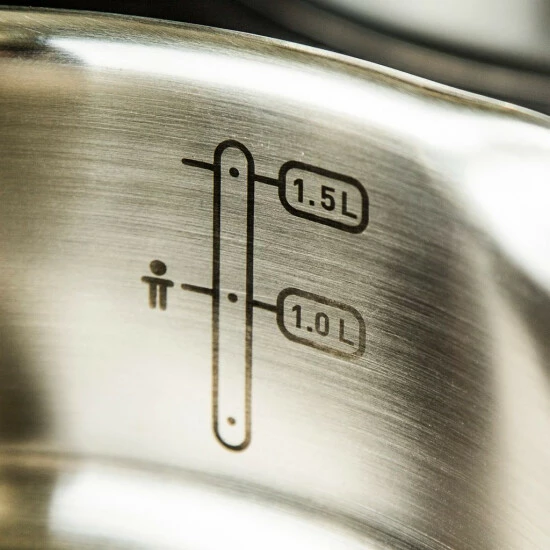 Eigenschaften spülmaschinengeeignet, Backofengeeignet, Rostfreies Stahl 18/10, Liter-Skala