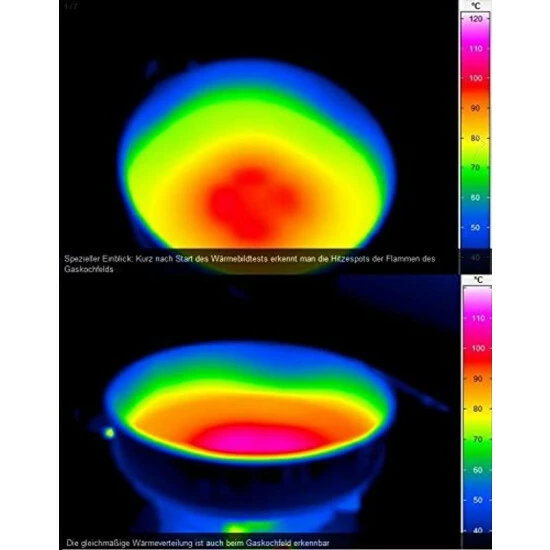 gute Hitzeverteilung (siehe Wärmebildfoto)