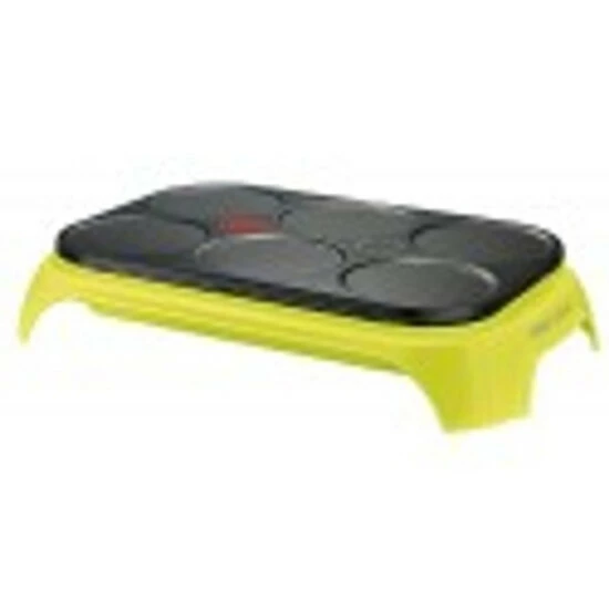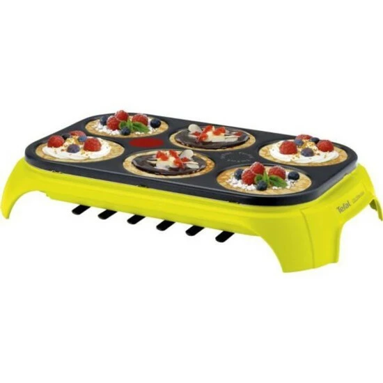 Crep Party – Colormania – Un appareil ingénieux et pratique pour des moments conviviaux ! – Design épuré moderne et compact avec des tonalités acidulées – Le crêpier 6 empreintes (Ø 12 cm) ingénieux destiné à ceux qui recherchent la performance de cuisson en même temps que la compacité et la sécurité d’utilisation – Revêtement anti-adhésif Prométal longue durée et résistant – Indicateur Thermo-Spot pour une température de cuisson idéale – Dimensions de la plaque 40.6 x 27.5 cm – Voyant lumineux – Bouton marche/arrêt – Contour thermoplastique pour une utilisation sécurisée – Livré avec 6 spatules et 1 louche doseuse – Cordon amovible de 1.