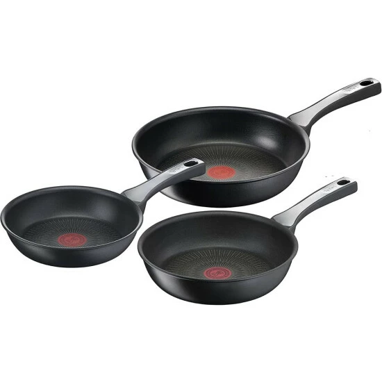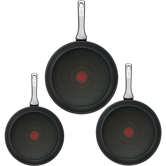 Tefal G25991 Unlimited On Pfannenset 3-teilig, mit kratzfester Beschichtung, geeignet für alle Herdarten – Schwarz