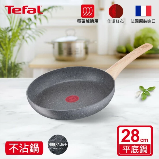 Die Tefal Natural Force Bratpfanne 28 cm ist ideal für das Braten von 4 Steaks oder 4 Portionen Kartoffeln. Dank des Thermo-Signal weißt du genau, wann die Pfanne heißt genug ist, um das Fleisch hineinzugeben. Das Thermo-Signal färbt sich bei der richtigen Brattemperatur nämlich gleichmäßig rot. So brätst du das Fleisch außen knusprig und innen zart. Die Pfanne hat eine Mineralia+ Beschichtung, die mit Mineralien angereichert ist. Dadurch ist die Pfanne kratzfest und langlebig. Die Pfanne ist leicht und eignet sich für alle Wärmequellen, inklusive Induktion und Nutzung im Backofen. Nach der Verwendung reinigst du die Pfanne einfach in der Spülmaschine.