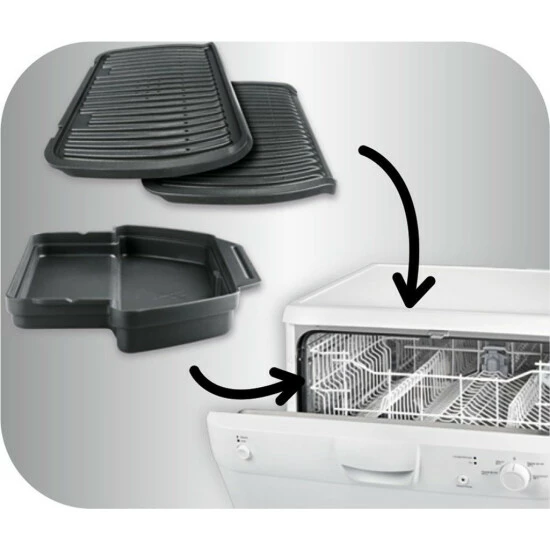 - Tischgrill mit 600cm² antihaftbeschichteter Aluguss-Grillplatten; spülmaschinengeeignet
