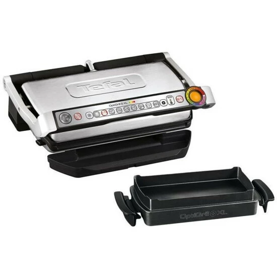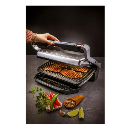 Bei der Innovation von Tefal, dem OptiGrill+ XL, sorgt intelligente Technologie für köstliche Garergebnisse. Mit einer großen Grillfläche für sechs bis acht Personen ist er ideal zum Grillen mit Familie und Freunden. Inklusive der Technologie „Automatic Sensor Cooking“: Garzeit und -temperatur werden auf Grundlage von 9 Garprogrammen (Burger, Steaks, Sandwiches, Würstchen, Fisch, Geflügel, Meeresfrüchte, Schweinefleisch und Bacon) automatisch je nach Dicke und Menge des Grillguts reguliert. Zusätzlich gibt es einen Modus zum Auftauen von Gefriergut. Eine direkte Überwachung ist über den Lichtindikator möglich: Violett für Vorwärmen, blau, dann grün zum Garbeginn, gelb, wenn das Grillgut blutig gebraten ist, orange für medium und rot für durchgebraten. Auf den Punkt für jeden Geschmack! Einfach den Deckel anheben und das Fleisch herausnehmen, wenn es fertig ist. Der Rest kann weiter garen! Mit dem zusätzlichen manuellen Modus mit 4 regulierbaren Temperaturen kann man verschiedenste Lebensmittel, Früchte und Gemüse, genau so zubereiten, wie es einem schmeckt.