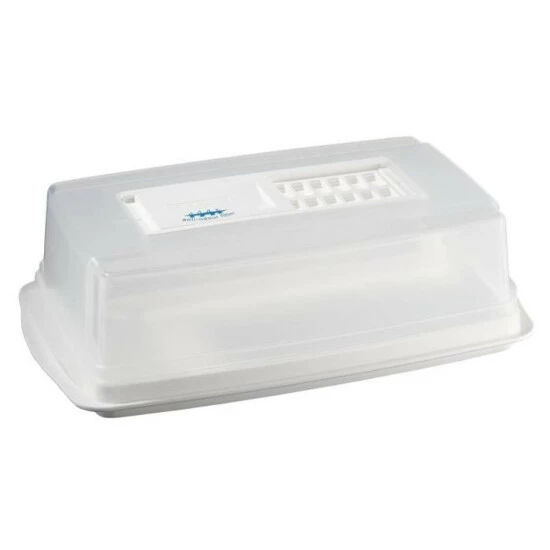 Keller TEFAL Anti-Geruchs-Käse aus weißen Kunststoff – Aktivkohlefilter: begrenzt Gerüche – Indicator / Datumsstempel für den Ersatz der Filters – mikroporöse Membran: Regulierung der Luftfeuchtigkeit – Schiebeschlitten: Steuerluftaustausch. Maße: 31x19x9cm.