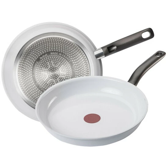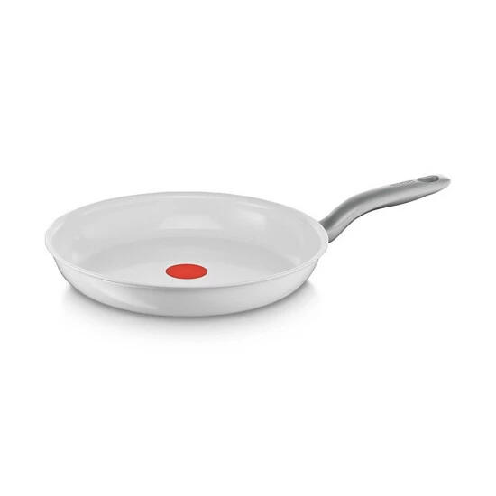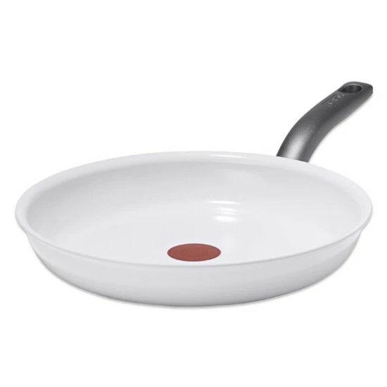 Extrahartes Leichtmetall. Außen: TEFAL Keramik-Versiegelung. Innen: TEFAL Keramik-Versiegelung. THERMO-SPOT: Der weltweit erste in die Pfanne integrierte Temperaturanzeiger! Er zeigt an, wann die Pfanne die optimale Brattemperatur erreicht hat. Geeignet auch für metallische Küchenhelfer. Boden: Induktionsboden mit eingearbeiteter ferromagnetischer Edelstahlplatte für perfekte Hitzeverteilung und optimale Planstabilität. Ergonomischer Bogengriff aus Thermokunststoff, Backofen geeignet bis 175 °C. Geeignet für alle Herdarten, auch Induktion. Farbe: weiß.
