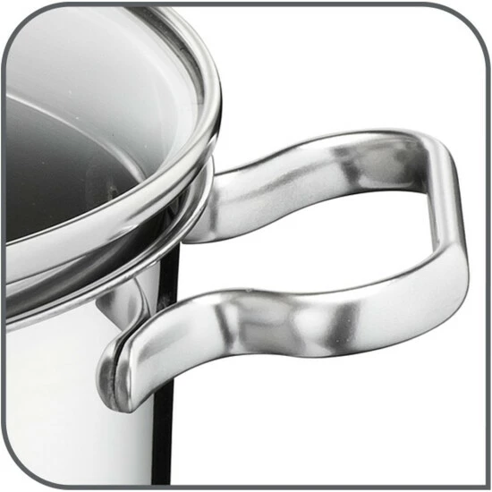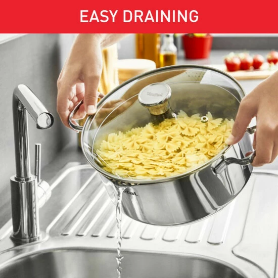 - Intelligentes Design mit speziellem Siebdeckel und Ausgießern, die ein einfaches und sicheres Abgießen und Servieren ermöglichen