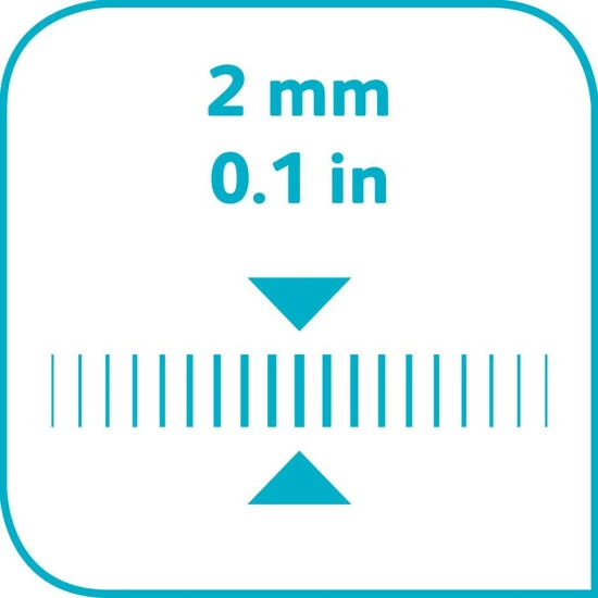 - Dass Messsystem ist sehr präzise und besteht zudem aus 2mm Skalen.