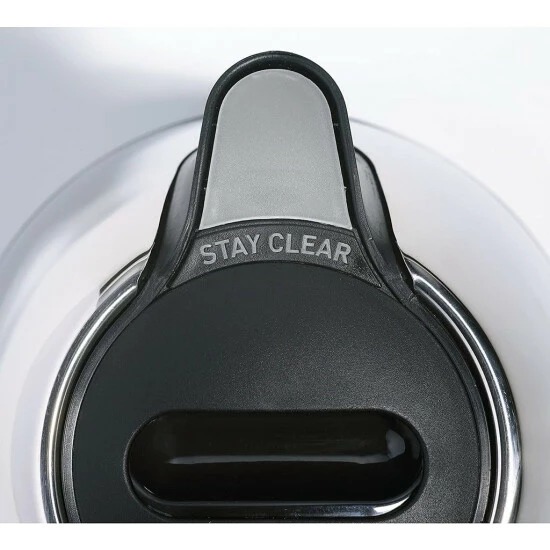 Inklusive zwei Wasserstandsanzeigen für Rechts- und Linkshänder, verriegelbarem Deckel und Kochstoppautomatik