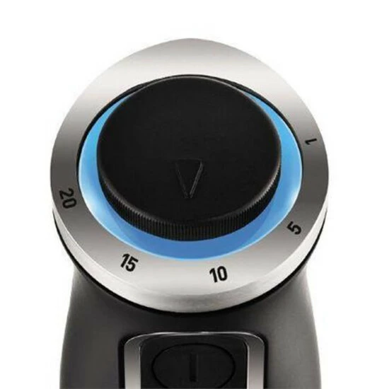 Leistungsstarkes Mischen liegt in Ihren Händen Mit dem Quickchef Handmixer genießen Sie mit minimalem Aufwand optimale Performance von Tefal. Dank des leistungsstarken 1000-W-Motors können Sie in kürzester Zeit eine Vielzahl von Gerichten zubereiten, und ohne den Mischer auszuschalten, haben Sie die vollständige Kontrolle über die Zubereitung mit einem intuitiven und einfach zu bedienenden Optionsschalter, der bei 20 Geschwindigkeiten einstellbar ist.