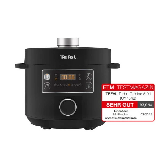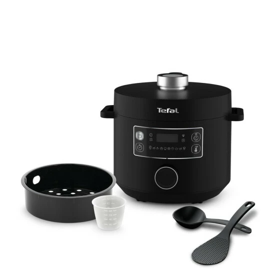 Ihre brandneue Lösung für köstliche Gerichte im Handumdrehen: Mit dem schnellen Multikocher TURBO CUISINE zaubert Tefal leckere, frisch gekochte Gerichte einfacher denn je auf den Tisch. Bereiten Sie dank der Vielzahl an automatischen Kochprogrammen mühelos köstliche, gesunde Mahlzeiten für die ganze Familie zu. Von Vorspeise bis Dessert, TURBO CUISINE bietet absolute Vielseitigkeit und herausragende Kochergebnisse für all Ihre Lieblingsspeisen. Alles vereint in nur einem Produkt und im Schnellkochmodus sogar bis zu 3x schneller*. Die patentierte Technologie der kugelförmigen Kochschüssel von Tefal bietet eine größere Heizfläche mit optimaler Wärmeverteilung und -zirkulation. Das Ergebnis sind zarte, saftige Gerichte für Sie und die ganze Familie. Alles in nur wenigen Schritten zubereitet mit einem einzigen, intuitiven Drehknopf für größtmöglichen Benutzerkomfort. Einfach gekocht, jeden Tag aufs Neue.