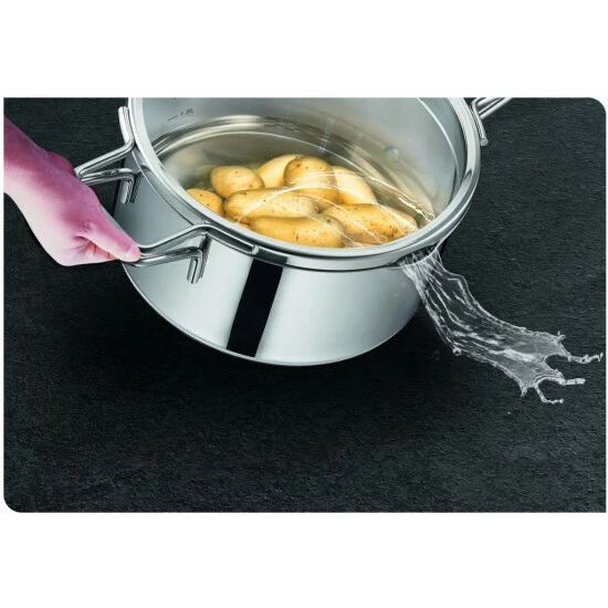 Patentierte Doppelstahlgriffe, Seitenprofile und Spezialdeckel.