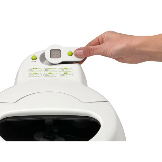- Der rotierender Rührarm sorgt für ein automatisches Rühren und Umwälzen und verteilt das wenige Öl gleichmäßig