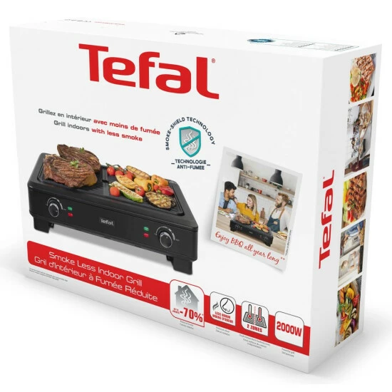 Präsentation: TEFAL Tischgrill für den Innenbereich ohne Rauch – 2000W, Praktisch und sehr kompakt bei Verwendung auf dem Tisch, dieser Tischgrill ist ideal für das ganze Jahr über. Geruchsarme, rauchfreie Technologie für geruchloses Grillen Zwei Kochflächen ermöglichen es Ihnen, verschiedene Zutaten gleichzeitig bei unterschiedlichen Temperaturen zu verwenden. Unabhängiger Thermostat. Zwei einstellbare Thermostate, die einfach die ideale Temperatur für alle Ihre Speisen regeln: heiß, niedrig, mittel, hoch und Grill. Einfache Reinigung, abnehmbare Kochplatten und spülmaschinengeeignete Saftwanne für eine schnelle und einfache Reinigung.