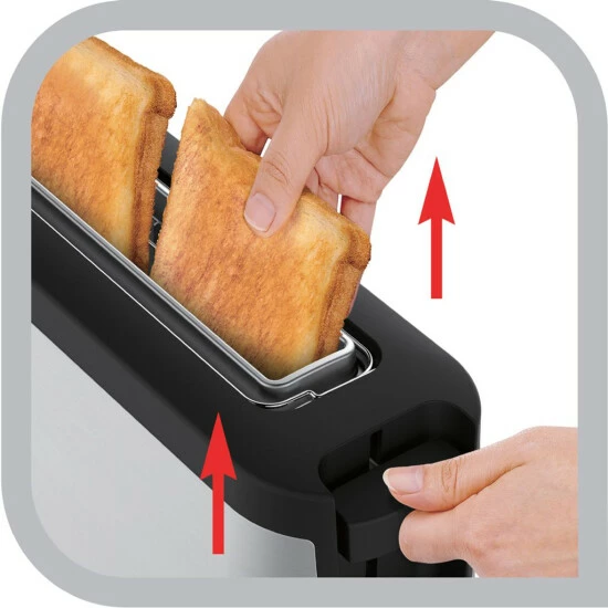 - Einzelne lange Toastkammer: Toastet alle Brotarten