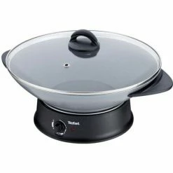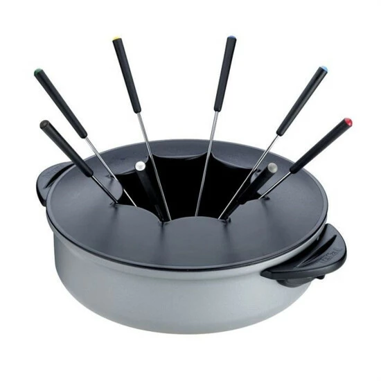 Kompakt geschmolzenen Wok – Leistung: 1200 W – komplette Demontage des Gerätes – Einfache Lagerung (Lagertasche und Transport) – Regelbarer Thermostat Mehr Positionen – 8 gabeln vernickeltem Stahl mit Isoliergas Griff – Farbe: schwarz und Silber