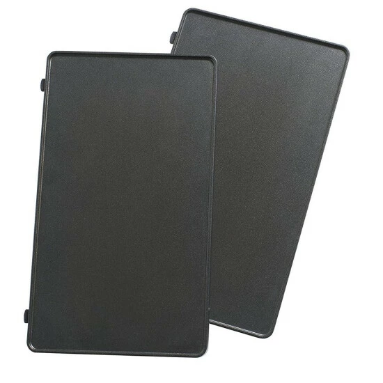 Tefal XA801412. Produkttyp: Ersatzteller, Produktfarbe: Schwarz, Kompatibilität: Tefal Snack Collection/SnackTime. Breite: 242 mm, Tiefe: 155 mm, Höhe: 44 mm. Verpackungsart: Box. Menge pro Packung: 2 Stück(e)